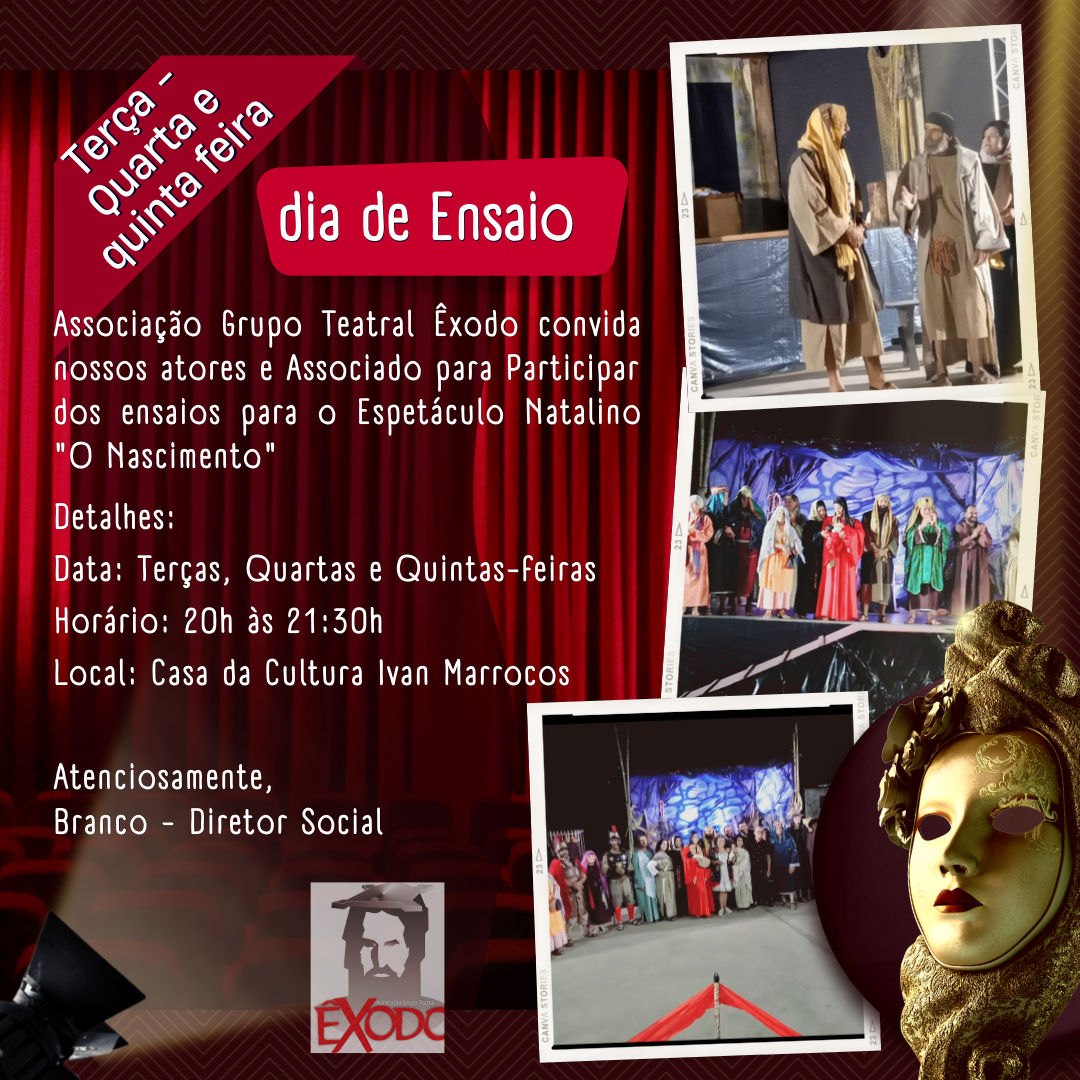 A Associação Grupo Teatral Êxodo é uma entidade sem fins lucrativos que tem como objetivo a transformação social através da arte do teatro. Fundada em 25 de julho de 1984, é conhecida pelo famoso espetáculo, O Homem de Nazaré, que emociona e encanta o público há décadas. Mas o trabalho do Êxodo vai muito além de uma simples apresentação teatral.